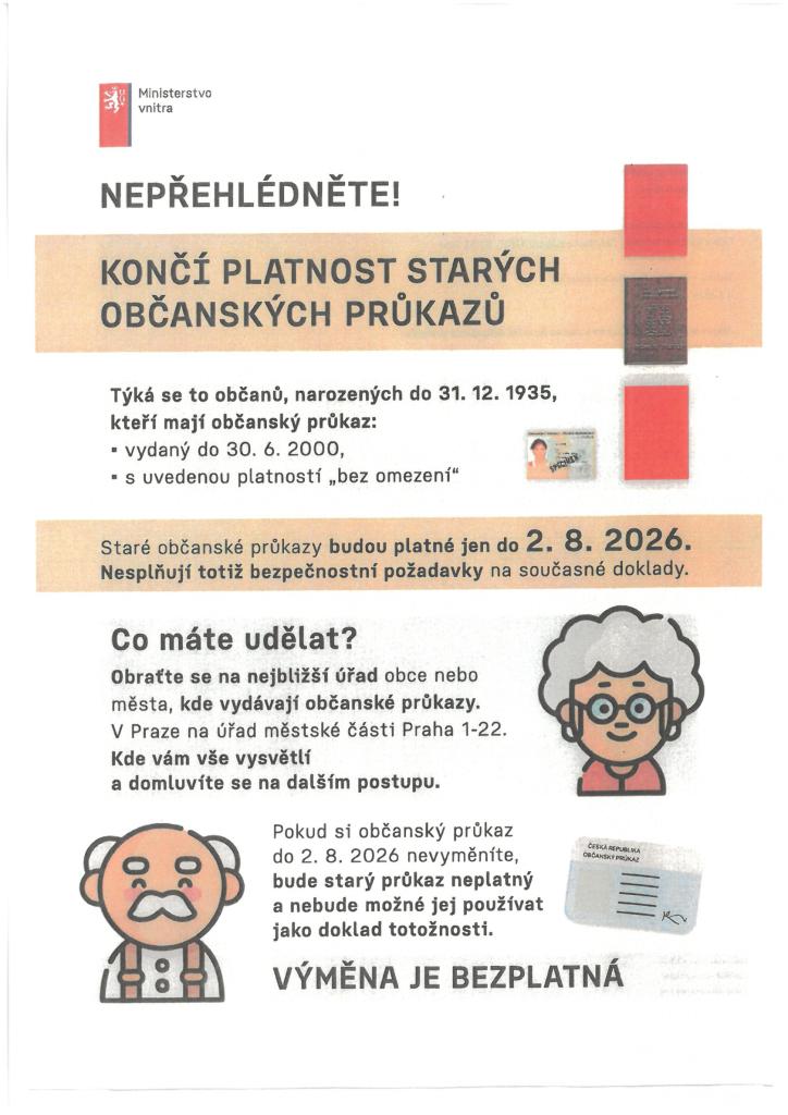 Upozornění pro občany narozené do 31. 12. 1935 - konec platnosti starých občanských průkazů