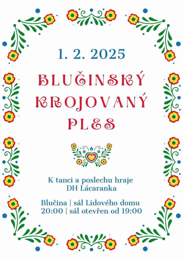 BLUČINSKÝ KROJOVANÝ PLESK tanci a poslechu hraje DH LácarankaBlučina | sál Lidového domu |1. 2. 2025 od 20:00 | sál otevřen od 19:00